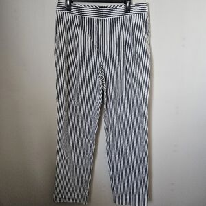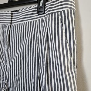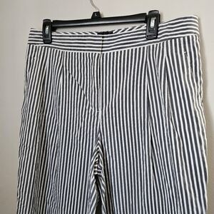 DKNY Chic Striped Trousers Gray White Print Casual Lightweight Neutral Size 14