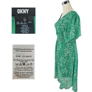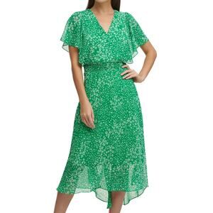 DKNY Chiffon green shirred detail Flutter Sleeve Midi Dress, 20W