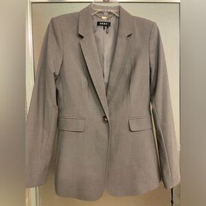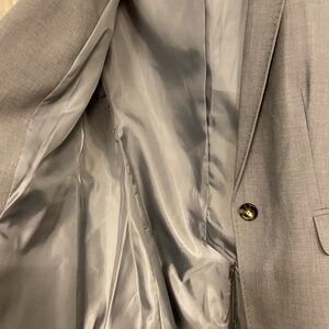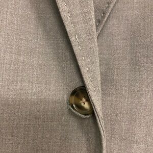 Timeless gray blazer with a single-button closure. Tailored fit for a polished look. Ideal for professional settings.