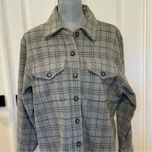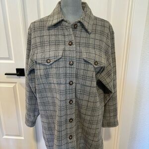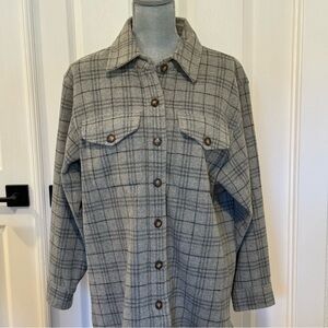 DKNY Classic Women’s Gray Oversized Button Down Shirt Shacket Coat Size Small