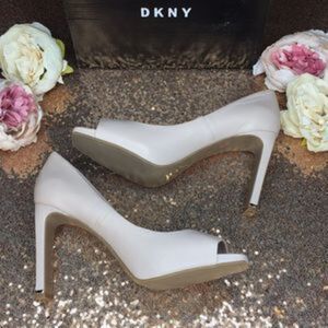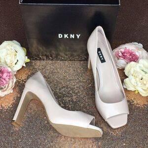 DKNY Claudia Leather Peep Toe Pumps 10 Nude