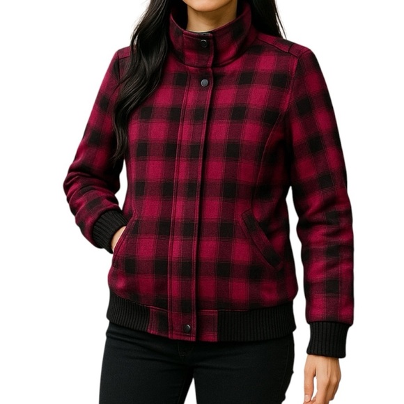 DKNY Jeans Plaid Wool Blend Jacket Coat Size Medium