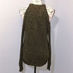 DKNY Cold Shoulder Knit Metallic Sweater Long Sleeve in Black Gold Size Medium