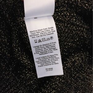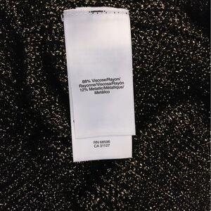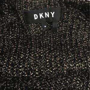 DKNY Cold Shoulder Knit Sweater Long Sleeve Metallic Blouse Black Gold Medium • Excellent Pre-Owned Condition | Like New | minimal signs of wear • See pics for details. For accurate sizing please research designers size charts. • Color may vary slightly due to lens, lighting or viewers screen settings