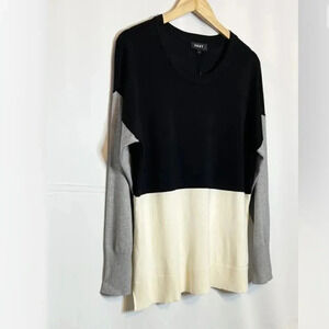 DKNY | Colorblock Sweater Crewneck Dropped Sleeves Ribbed Hem