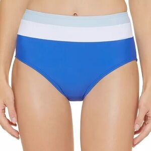 DKNY Colorblocked High-Waist Bikini Bottoms swimsuit, swimwear Lapis Blue New L
