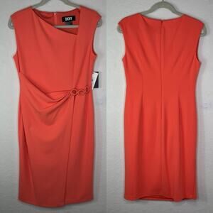 DKNY Coral Shift Dress Midi Size US 6 NWT, Office, Business, Party/Cocktail, Formal, Work, Elegance, Bright, Glam, Chic.