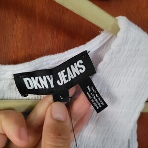 DKNY Cotton Gauze Smocked-Bodice white Maxi Dress size L sleevesless 100% cotton