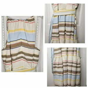 DKNY Cotton Halter Neckline Belt Sleeveless Midi Ivory Multicolor Dress Size 18W