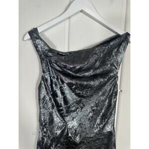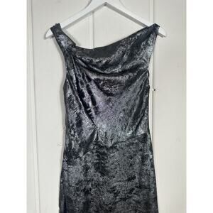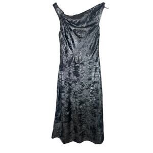 DKNY Cowl Neck Liquid Velvet Midi Dress- Silver- 2 Event Cocktail Whimsy