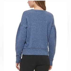 DKNY Crew Neck Long Puffed Volume Sleeve Pleated Dropped Shoulder Sweater Sz XL