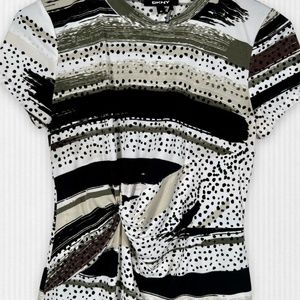 DKNY Crew Neck Short Sleeve Top Front Knot and Gathering Size Petite Small