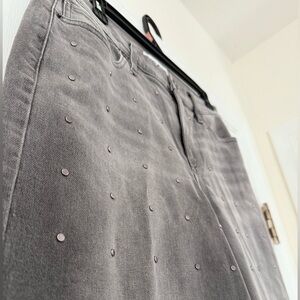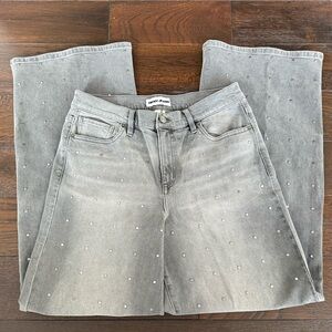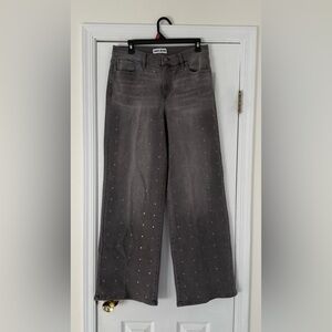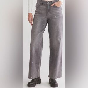 Chic DKNY gray-wash, high-wasted, wide-leg jeans with subtle studded accents. Slight stretch and exceptional quality. NEVER WORN!