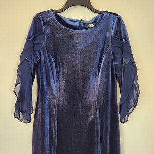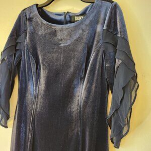 DKNY Deep Navy Velour Sheath Dress, Tiered Sleeve sz8 NWT