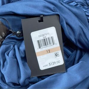 DKNY Deep Sea All Around Pleat Ribbon Back Neck Belted Dress Size 12 NWT