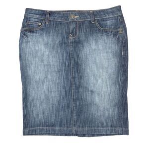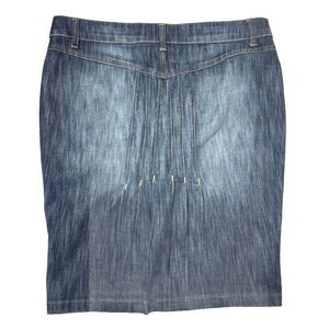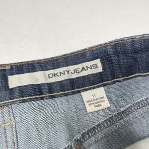 DKNY Denim Mini Skirt Sz 11 Distressed Grunge Y2K Stretch Ruched Pencil 90s