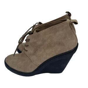 DKNY Donna Karan Bedford Tan Suede Almond Toe Lace Up Ankle Wedge Booties 9/40