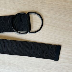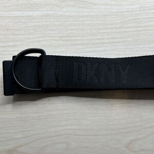 DKNY Donna Karan Belt OS Black Nylon Logo Double D Ring 39” Long Unisex Utility