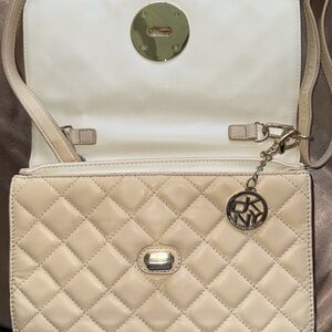 DKNY Donna Karan Cream Leather Quilted Bag Gold Hardware Detachable Strap