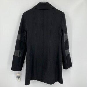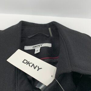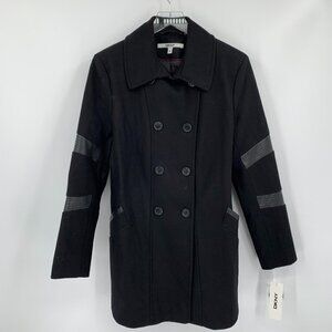 DKNY Donna Karan double breasted wool coat jacket faux leather trim new 14