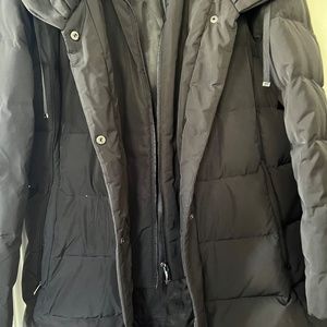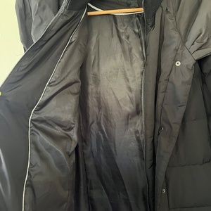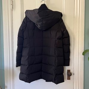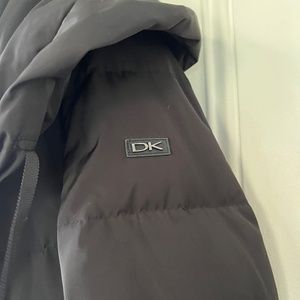 DKNY Donna Karen NY Long Puffer Jacket with Oversized Hood, Black, Size L