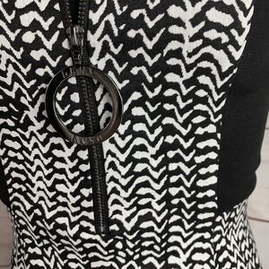 DKNY Dress Bodycon Slim 2 XS Black White zipper Stretch zigzag animal Colorblock