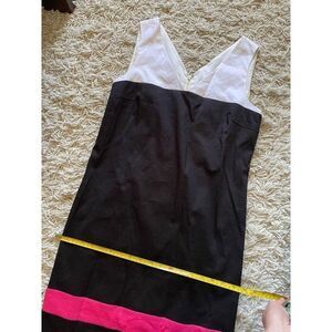 DKNY Dress Color Block Black Pink White Sheath Medium V-Neck Colorblock