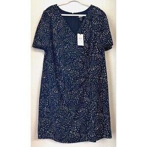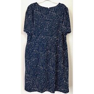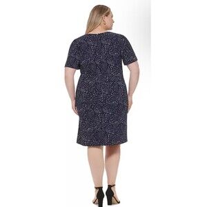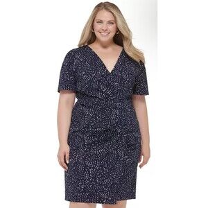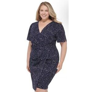 DKNY Dress Navy Blue Lilac Printed Faux Wrap Dressy Knee Length Stretch Plus 22W
