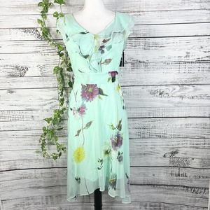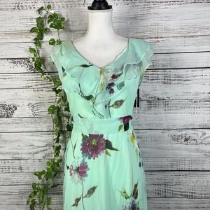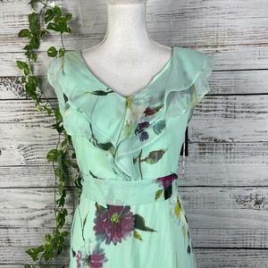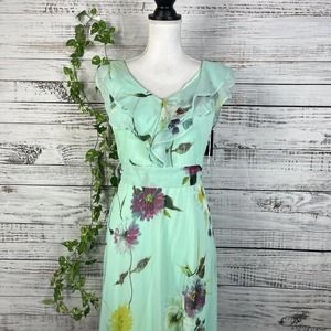 DKNY Dress size 4 Mint Green Pink Floral Sheer Ruffles Wedding Hawaiian Cruise