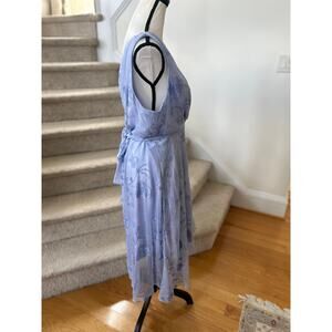 DKNY Dusty Blue Embroidered Floral Sleeveless Asymmetric Hem Midi Dress