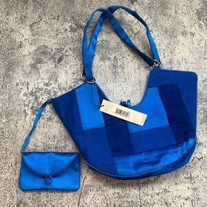 DKNY Electric Blue Amish Quilt Patchwork Cloth Shoulder Bag Womens Small NWT
