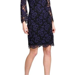 DKNY Elegant Floral Lace Long Sleeve Dress in Purple