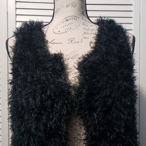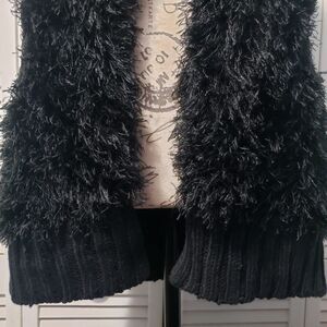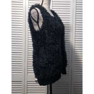 DKNY Eyelash Sweater Vest Women's Large Black Knit Single Hook & Eye Closure. Stretch.