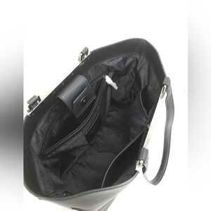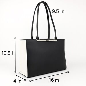 Crafted in black and white colorblock smooth leather, this lightweight tote flaunts a spacious interior for all of your commuter travel everyday essentials.