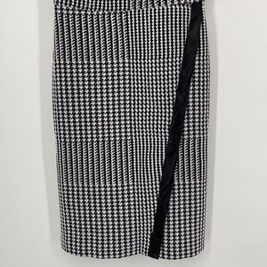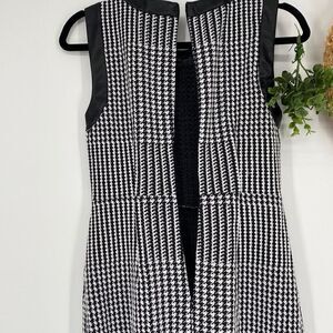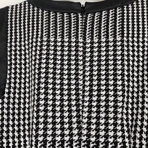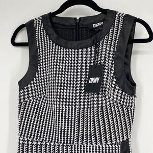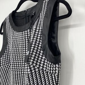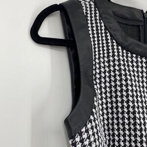 DKNY Faux Leather Wrap Houndstooth Sleeveless Dress Sheath MIDI Black White 2