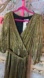 Shine bright and make a statement with this DKNY women's metallic gold faux wrap balloon sleeve dress, combining glamour and elegance for a look that's perfect for any special occasion.