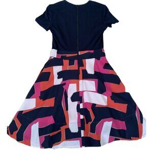 DKNY Fit & Flare dress, short sleeve with print skirt and bodice. Shake up your wardrobe with this playful dress! With a flirtatious flared fit and quirky mixed prints on the skirt and bodice, this dress is sure to turn heads. It's the perfect mix of sophistication and fun (just like you).