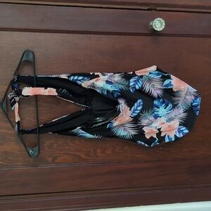 DKNY Floral Black Tie Halter One Piece Swimsuit Size XXL
