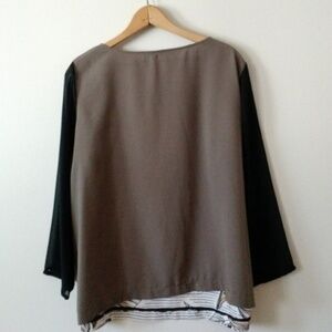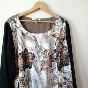 DKNY Floral Blouse Black Neutral Top Sz 2x Plus Size Neutral