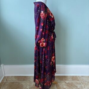 DKNY Floral Boho Bohemian Flowy Illusion Sleeve Dress Wmn’s Sz 14