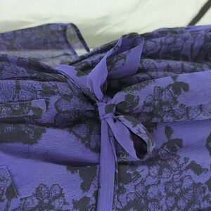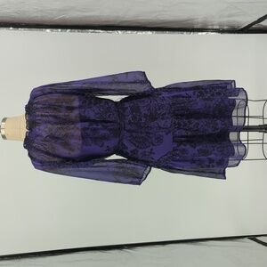has removable slip and waist tie. Indulge in luxury with this elegant purple lace robe. Perfect for a touch of sophistication in your intimate wear collection.