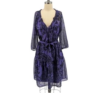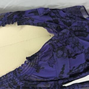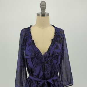 DKNY Floral Chiffon Tunic Dress Blue Black S bohemian casual w slip spring