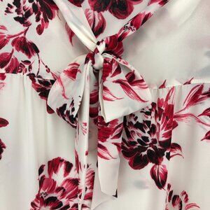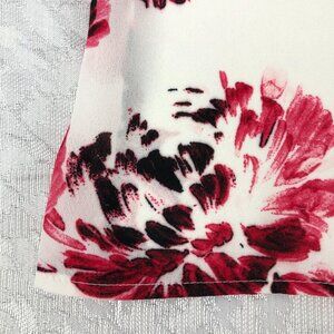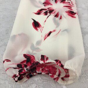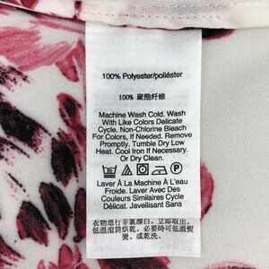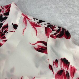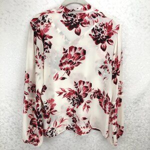 DKNY Floral Cream & Pink Long Sleeve Sheer Bow Tie Front Pullover Blouse Size PM