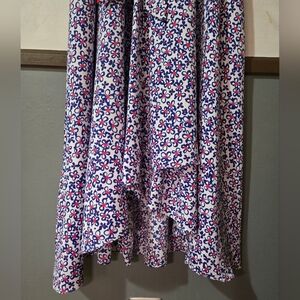 DKNY Floral Print Faux Wrap Iris Dress Multi Color Blue And Red Size 6