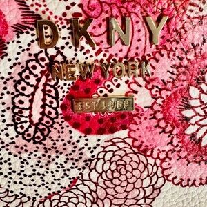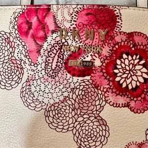 DKNY Floral Purse NWOT,gold pin-mount logo,genuine leather,center zip tote,work