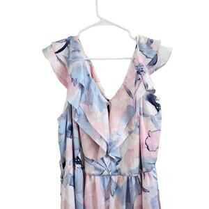 DKNY Floral Ruffle Collar V-Neck Short Flutter Sleeves Tie Waist Maxi Dress 20W