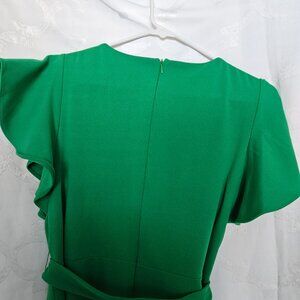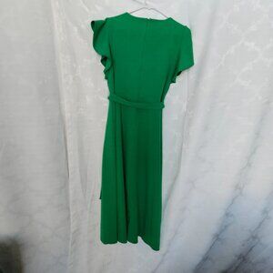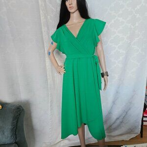**DKNY Flutter Sleeve Faux Wrap Green Midi Dress**