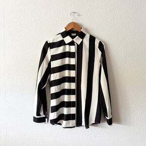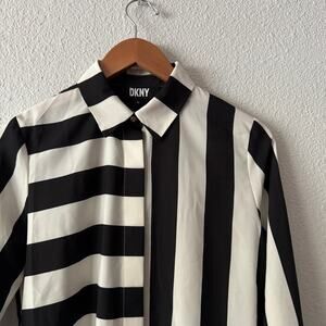 DKNY Foundations Striped Blouse Womens XS button up professional business work