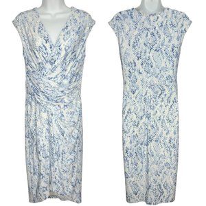 DKNY Gathered Faux Wrap Dress size 8 Blue Snake Print Surplice Tulip Skirt