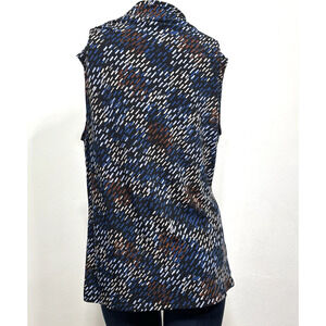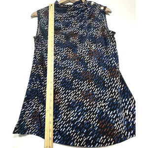 DKNY Geometric Sleeveless Blouse Shoulder Button Detail Career Casual Sz Medium